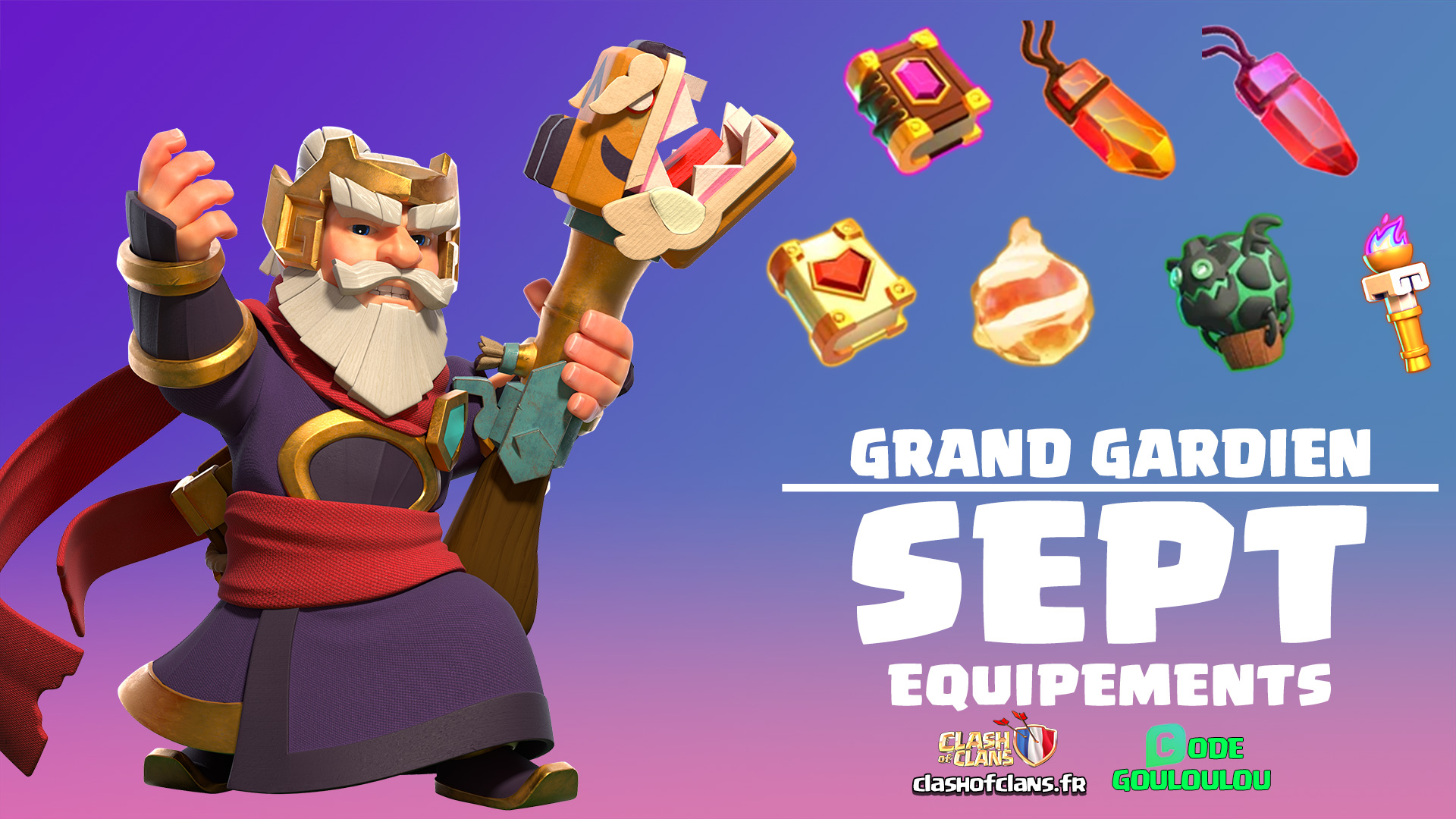 Le Grand Gardien, héros emblématique du soutien stratégique dans Clash of Clans, dispose d’un éventail varié d’équipements qui renforcent considérablement ses capacités offensives. À la différence des autres héros, ses équipements sont pensés pour influencer toute une section de l’armée, en maximisant la durabilité ou la puissance de frappe des troupes qu’il accompagne. Qu’il s’agisse d’aides passives ou d’effets activables puissants, ces équipements lui permettent d’accompagner efficacement toutes sortes de compositions, terrestres ou aériennes. Ils améliorent sa résistance, sa capacité à protéger les troupes alliées, ou encore sa puissance de frappe. Grâce à cette diversité, le Grand Gardien peut s’adapter à de nombreuses stratégies offensives, que ce soit en Warden Walk, en soutien d’un Dirigeable, ou dans le cœur d’un assaut de masse. Ses équipements le rendent aussi bien utile pour amorcer une attaque que pour accompagner l’armée principale dans les zones les plus dangereuses. Indispensables à haut niveau, ils font de lui un pilier incontournable dans la réussite des attaques trois étoiles.