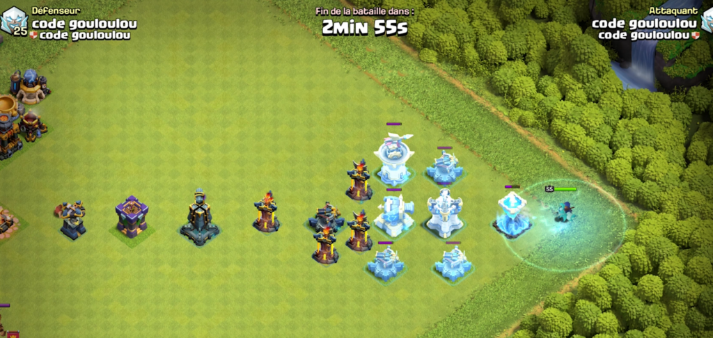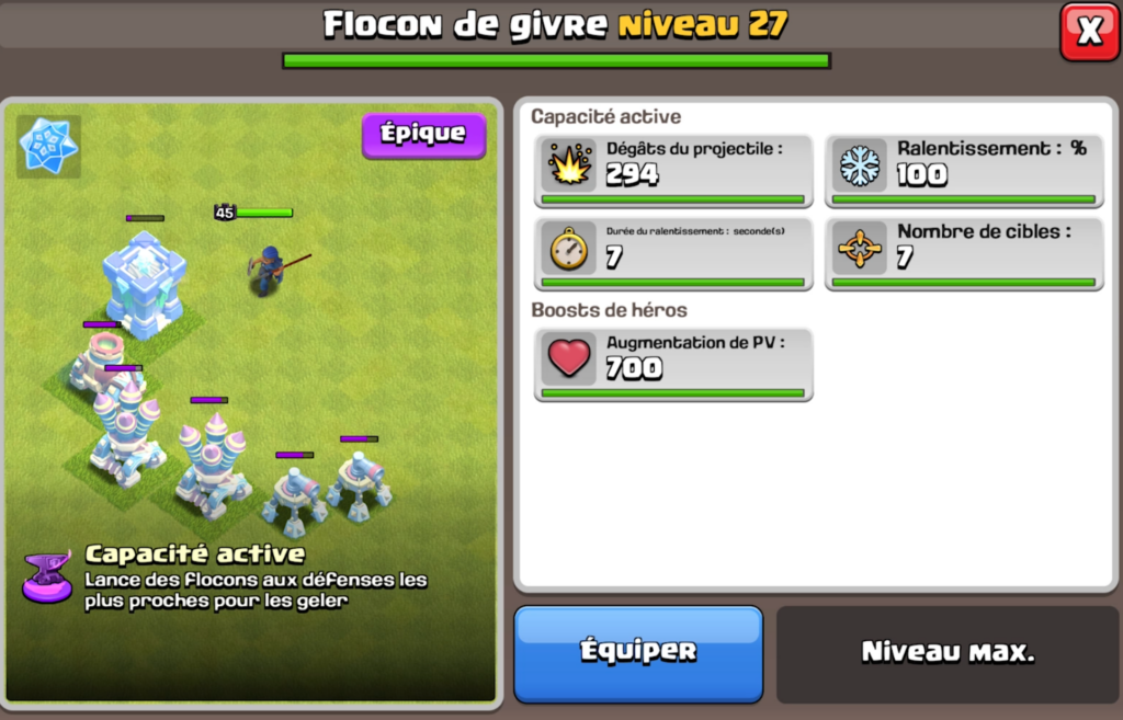 En soutien des Cavalières, des autres héros…etcc, geler 7 défenses d’un coup peut booster une fin d’attaque. Le potentiel est énorme… mais il faudra tester en situation réelle pour ajuster les timings.