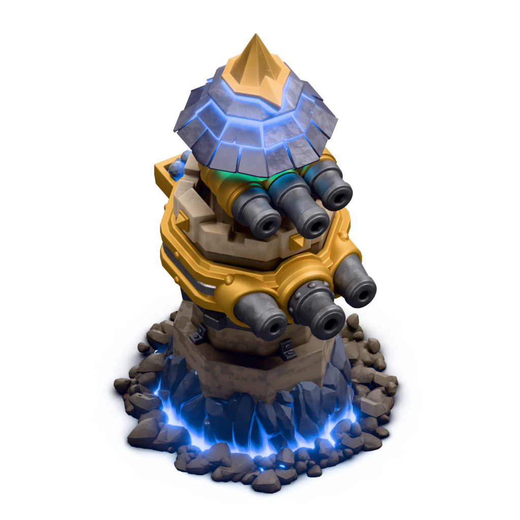 Le Canon à Ricochet est une défense puissante débloquée à l’Hôtel de Ville 16. Grâce à son tir rebondissant, il inflige des dégâts à deux cibles alignées, rendant les assauts terrestres beaucoup plus risqués.