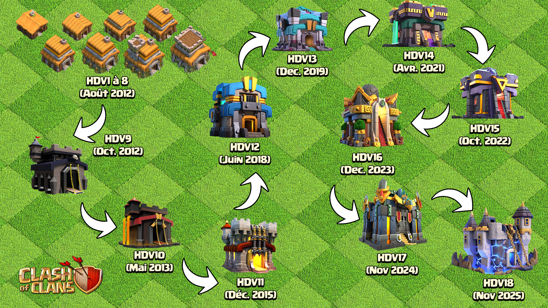 L’HDV n’est pas seulement un bâtiment : c’est le cœur de votre stratégie. Prenez votre temps pour progresser intelligemment, apprenez les meilleures compositions d’attaque pour chaque niveau, et devenez un véritable chef de guerre !